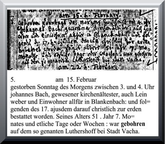 konnte, ist vom 17. Februar 1711, dem Sterbetag des Johannes Bach. Zu