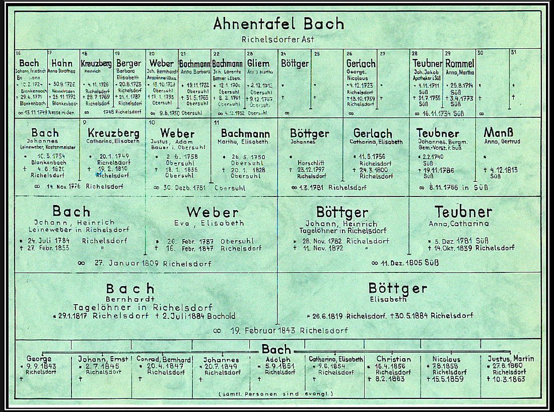Vor unserem Ur-Vater Veit Bach fand ich bisher keine